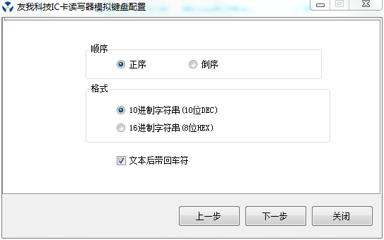 安装友我科技IC卡模拟键盘输出软件,可以按照自己的需求将IC卡的卡号或者IC卡的内存数据输出到计算机的光标处.